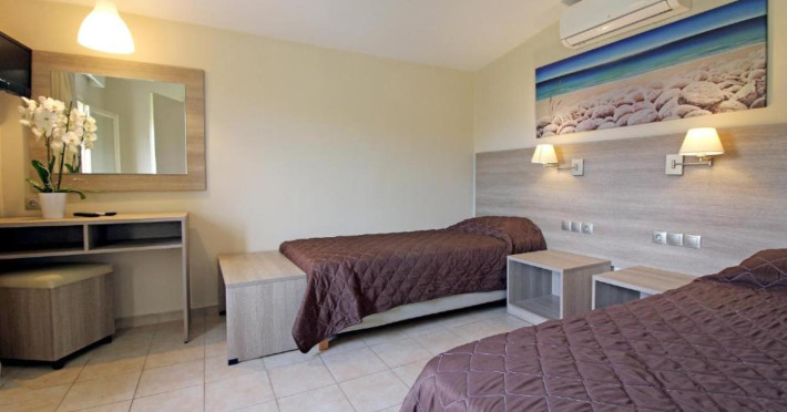 Messonghi offers an ideal setting for summer getaways on Corfu Island. Nestled between Moraïtika and Messonghi villages, it boasts beachfront access and is just 22 km from Corfu Town and the airport. Surrounded by lush gardens, the accommodations feature views of the pools or the Ionian Sea, with amenities like air conditioning, satellite TV, and private bathrooms.