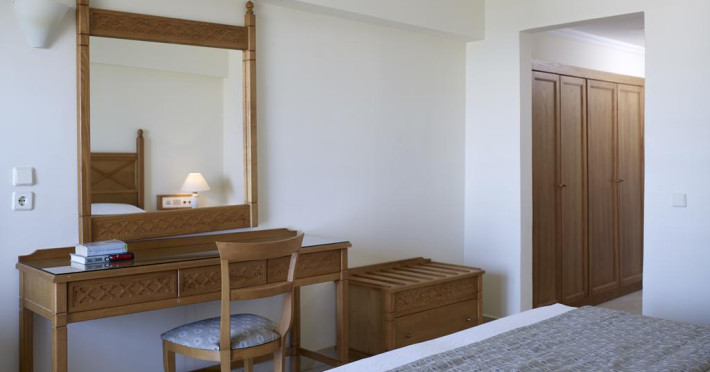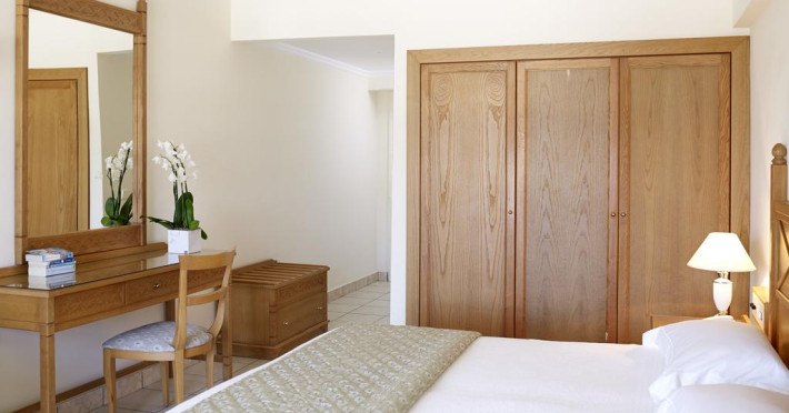 Sunt disponibile 215 camere. Fiecare cameră oferă cană-fierbător și mașină pentru prepare cafea sau ceai. Oaspeții pot solicita serviciul de room service pentru a servi masa sau diverse băuturi. Camerele confortabile de la Mitsis Petit Palais au pardoseală de gresie/ marmură, aer condiționat, Tv cu canale prin satelit și seif. În camere există baie cu cadă sau duș ce are în dotare foehn și articole de toaletă gratuite. Unele camere au balcon cu vedere la mare sau la grădină. Curățenia in cameră se face zilnic. Proprietatea oferă camere pentru familie cu o suprafață mai mare și un număr mai mare de paturi față de cele standard. Se pot rezerva de asemenea camere pentru nefumători.