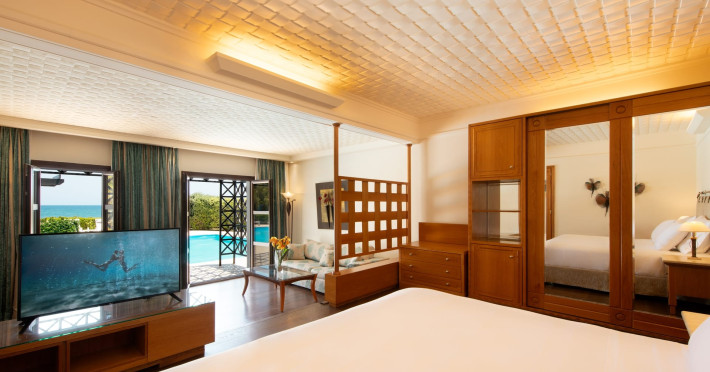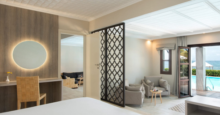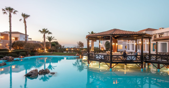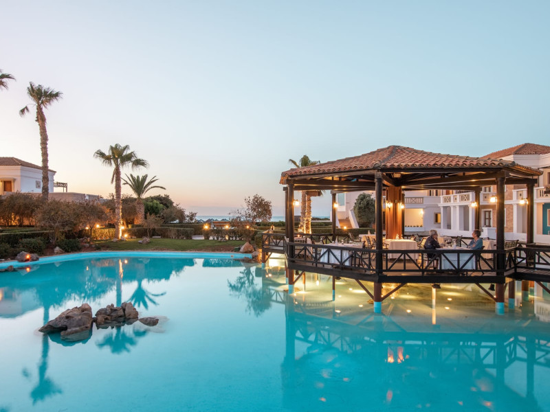 Mitsis Royal Mare in Crete is a luxurious 5* resort sprawling over a large sea-side property with a breath-taking design of rooms and an amazing pool landscape. The hotel opened in 1997 on the Blue Flag awarded beach of Anissaras, in Hersonissos, Crete. Mitsis Royal Mare features 385 luxurious rooms, 7 restaurants and 4 bars spread throughout the resort, a state-of-the-art and multi-awarded Thalasso Centre that can offer 69 therapies in parallel, 29 secluded pools, as well as a variety of concierge & transfer services. Over 500 palm trees, large open-air areas, unique services and a wide selection of tastes, compose an amazing holiday scenery.Datorita dinamicitatii domeniului disponibilitatea ofertelor se modifica de la un moment la altul. De aceea ofertele sunt valabile in limita locurilor disponibile. Agentia nu este responsabila pentru eventualele neconcordante care pot aparea intre informatiile privind tarifele si alte detalii din site si informatiile primite in agentie. In aceste cazuri vor avea prioritate, intotdeauna, informatiile primite in agentie.