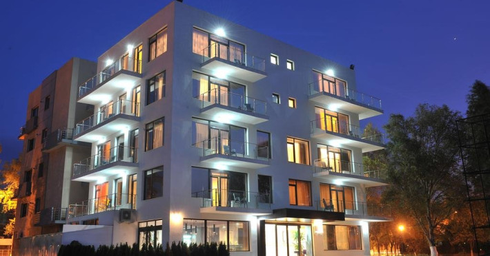VILA MIZUUMI este situata in zona centrala a statiunii Mamaia pe malul lacului Siutghiol la cca. 200 m de plaja. Constructie recenta (2009), avand finisaje moderne si un design interior deosebit.Vila dispune de 8 camere duble standard, 8 camere duble Lux si 4 apartamente.