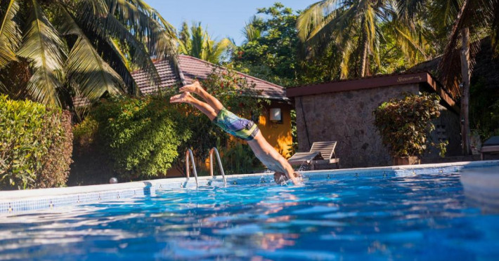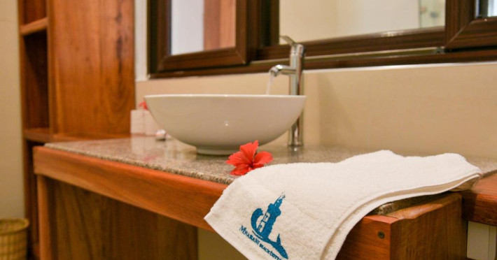 Există o piscină mare cu palmieri tropicali in jur și o cabină de masaj cu vedere la recif. Oaspeții au la dispoziție facilități pentru sporturi nautice, șezlonguri și prosoape de plajă. Oaspeții se pot bucura de vederi uimitoare la Oceanul Indian pe terasa din lemn, care este presărată cu șezlonguri, hamace și leagăne.