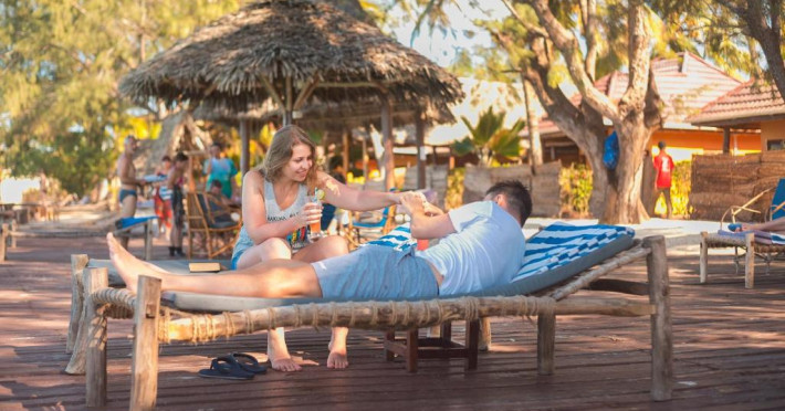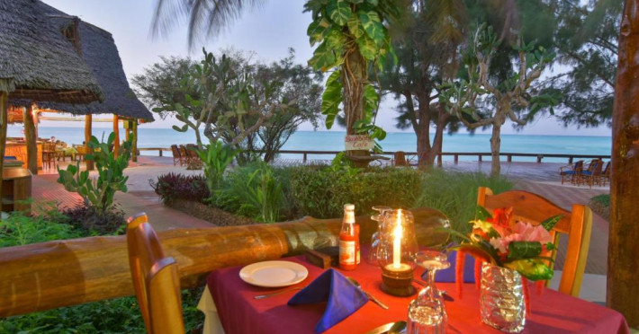 Specialități locale swahili din fructe de mare proaspete sunt servite zilnic in restaurantul à la carte, impreună cu alte opțiuni internaționale și vegetariene. Barul este situat pe plajă și oferă băuturi, jocuri și muzică in timp ce se relaxează pe o canapea sau un hamac.