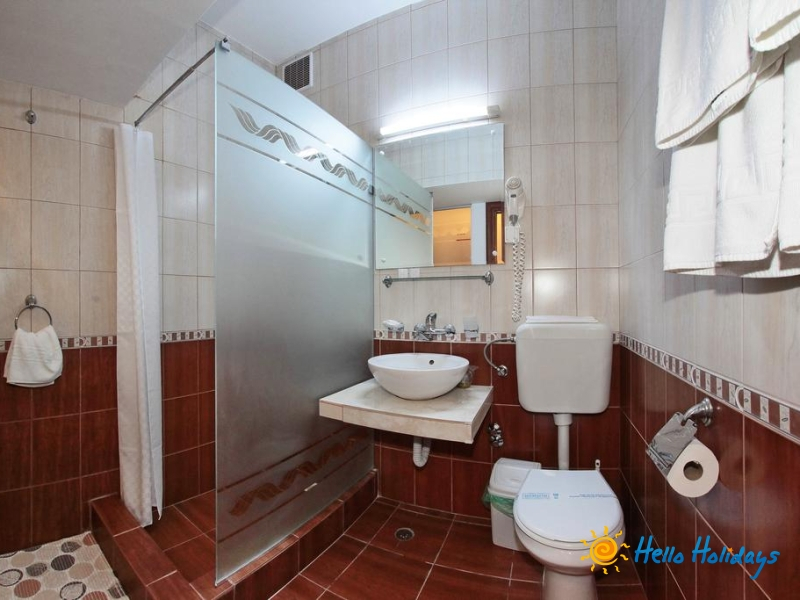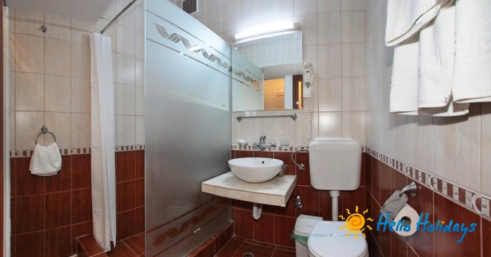 Camerele Hotelului Modern dispun de bai elegant finisate, echipamente sanitare si moderne, foehn, halat de baie, papuci.