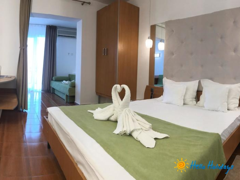 Cazare, mic dejun, acces gratuit la toate locurile de joaca, acces gratuit la mini terenurile de sport (echipamentele se ofera in limita disponibilitatii), acces gratuit la piscinele complexului cu sezlong gratuit, masute si umbrele in limita disponibilitatii, acces pe plaja complexului cu asigurarea gratuita a sezlongurilor (pentru adultii si pentru copiii cu varsta peste 7 ani) si umbrela de plaja.