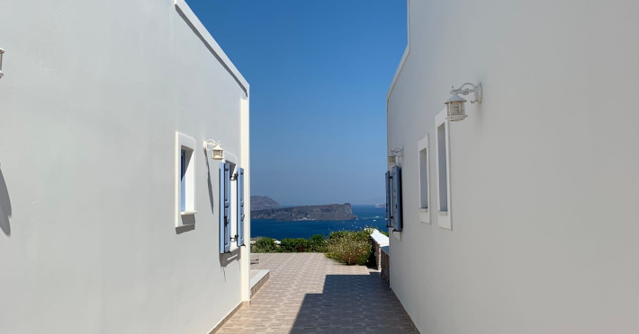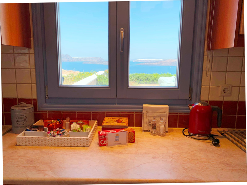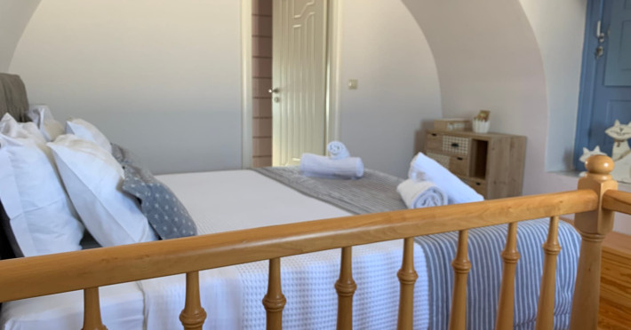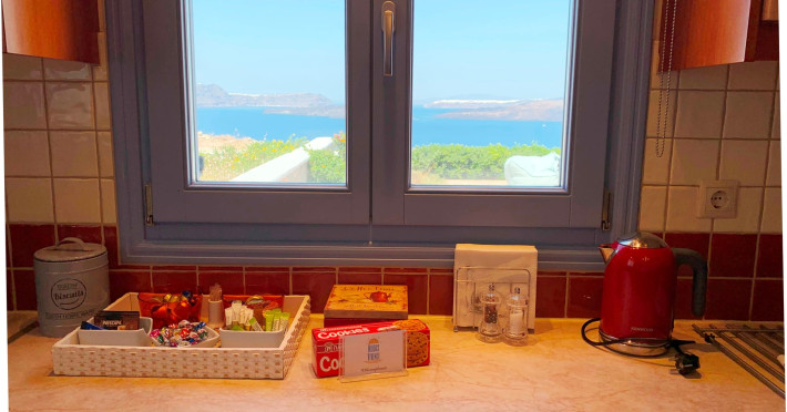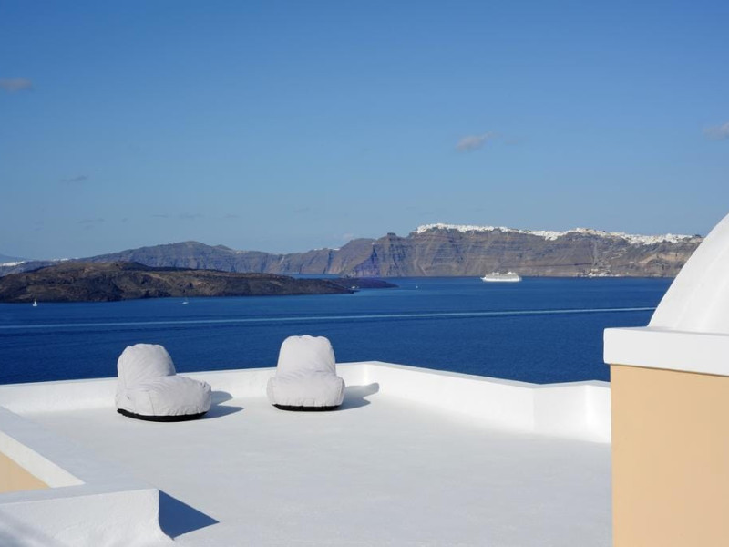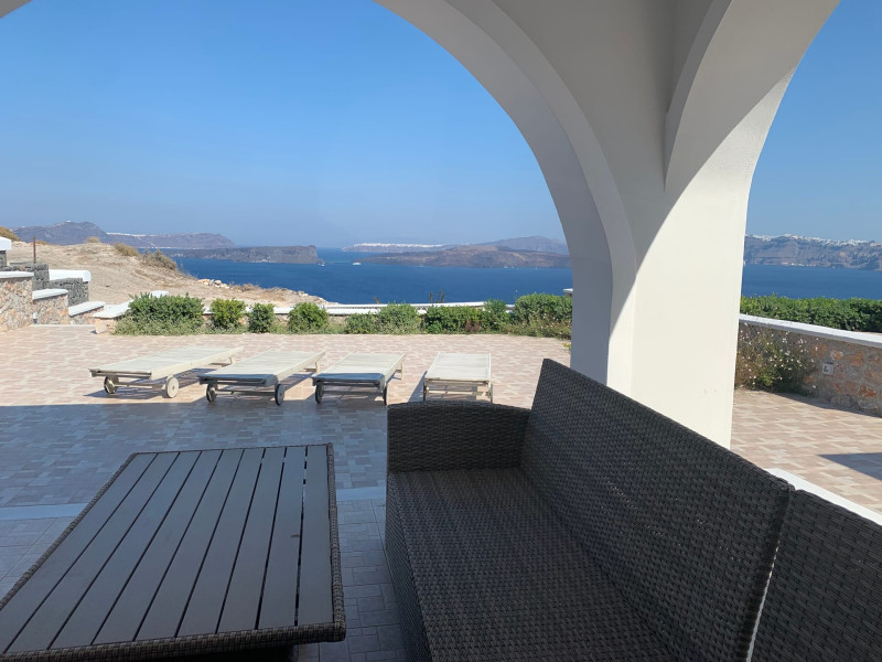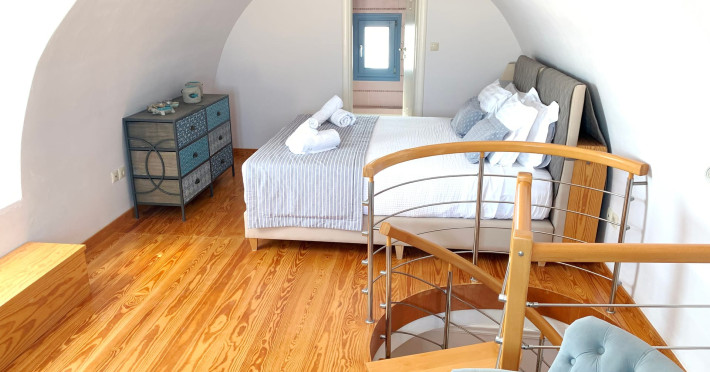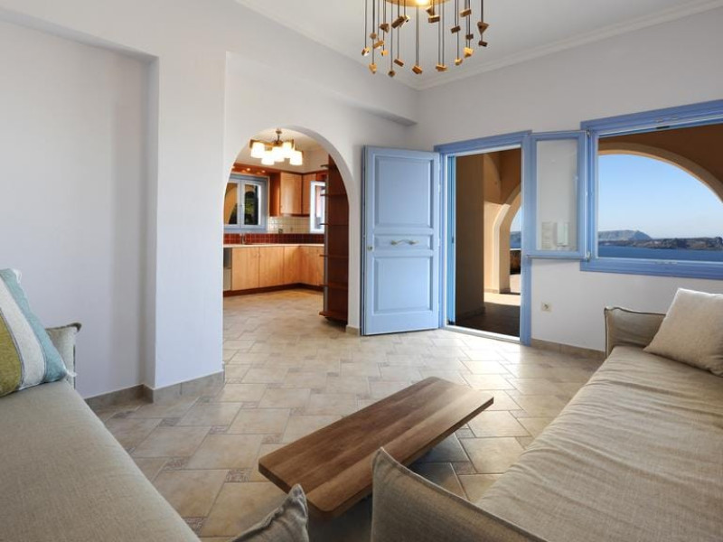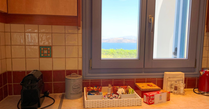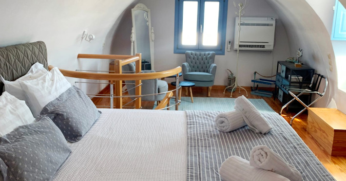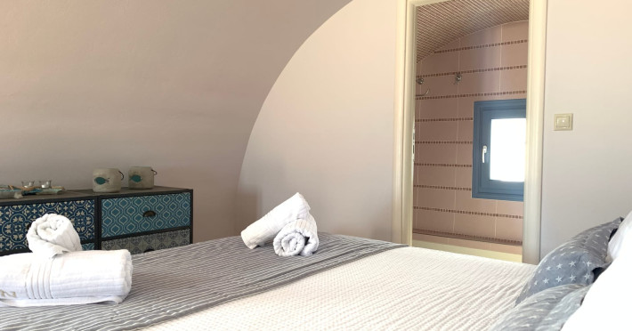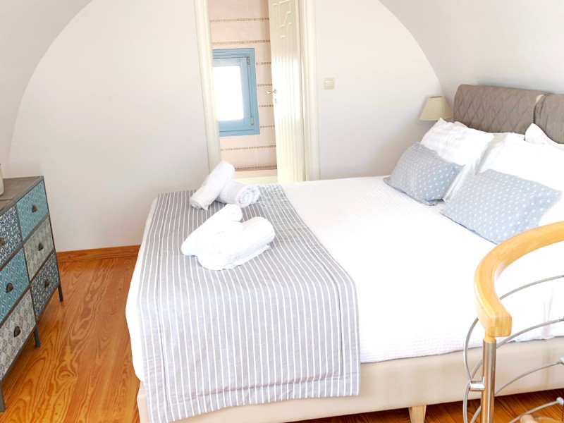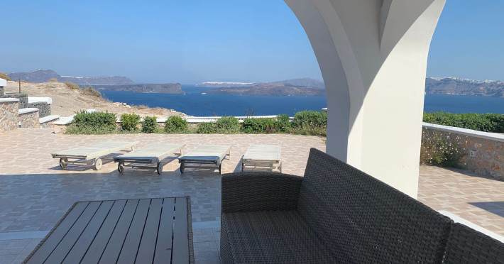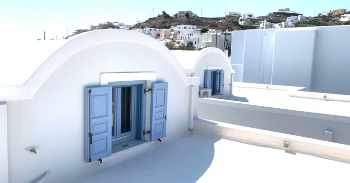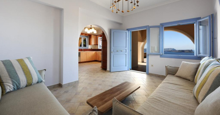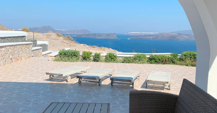 Accommodating up to six guests in its 110 square meters, each three-bedroom villa exudes the tranquility and allure of a Cycladic oasis that has it all: sweeping views over the volcano, comfortable living area with open-plan kitchen, spacious outdoor terrace with furniture and sunbeds. More specifically the villa offers an upper floor master bedroom, overlooking the volcano & caldera from the bed, with ensuite bathroom equipped with shower. This bedroom opens to a private terrace overlooking the caldera. Two ground floor bedrooms with king size beds sharing a bathroom with bathtub equipped with showerhead. A living area with flat-screen TV and open plan fully equipped kitchen and dining table which seats comfortably up to 6 persons.Accommodating up to six guests in its 110 square meters, each three-bedroom villa exudes the tranquility and allure of a Cycladic oasis that has it all: sweeping views over the volcano, comfortable living area with open-plan kitchen, spacious outdoor terrace with furniture and sunbeds. More specifically the villa offers an upper floor master bedroom, overlooking the volcano & caldera from the bed, with ensuite bathroom equipped with shower. This bedroom opens to a private terrace overlooking the caldera. Two ground floor bedrooms with king size beds sharing a bathroom with bathtub equipped with showerhead. A living area with flat-screen TV and open plan fully equipped kitchen and dining table which seats comfortably up to 6 persons.