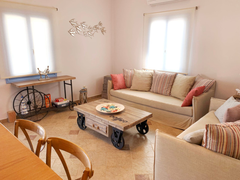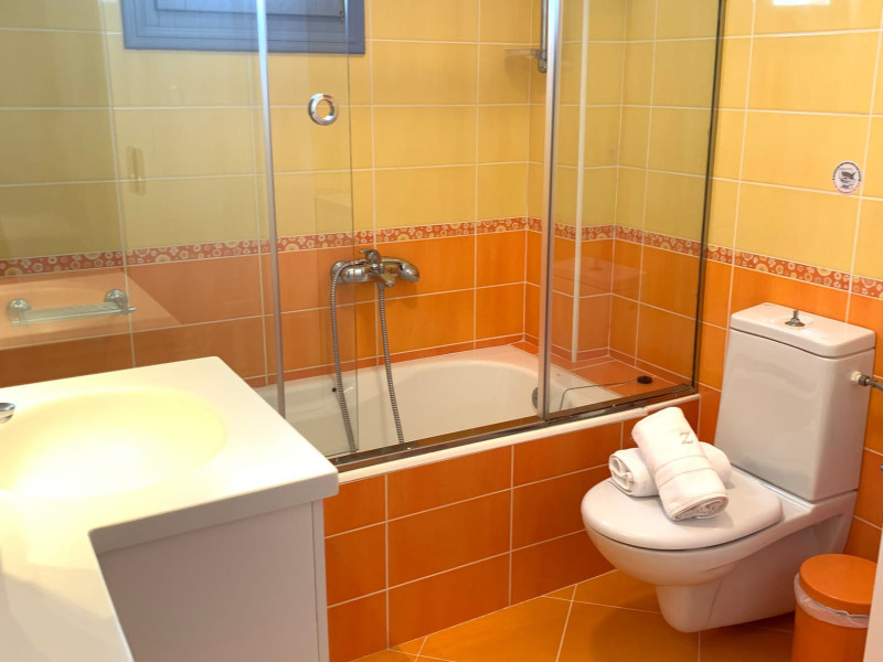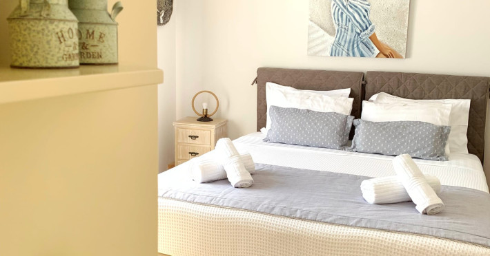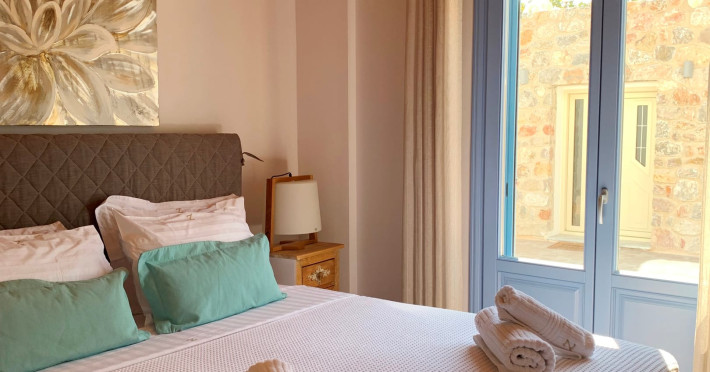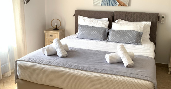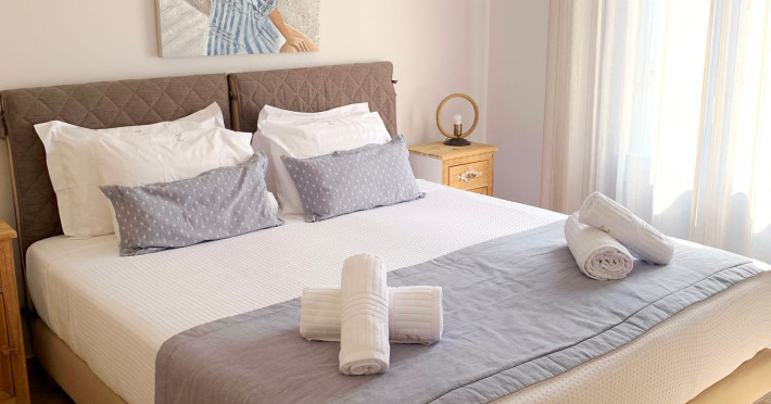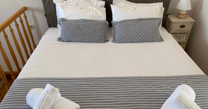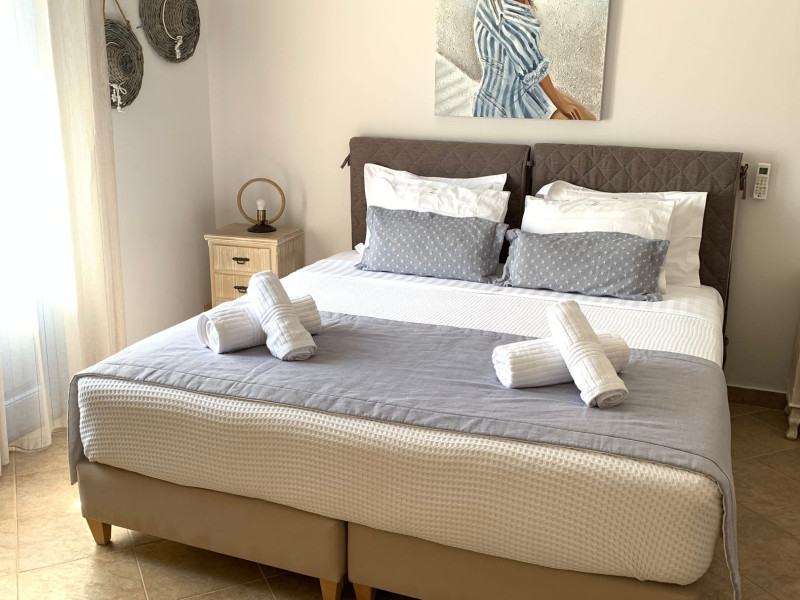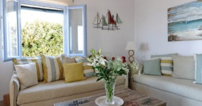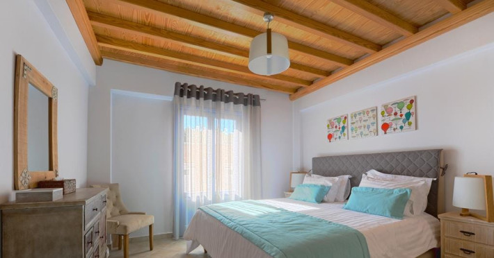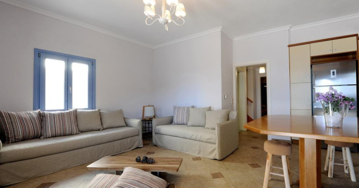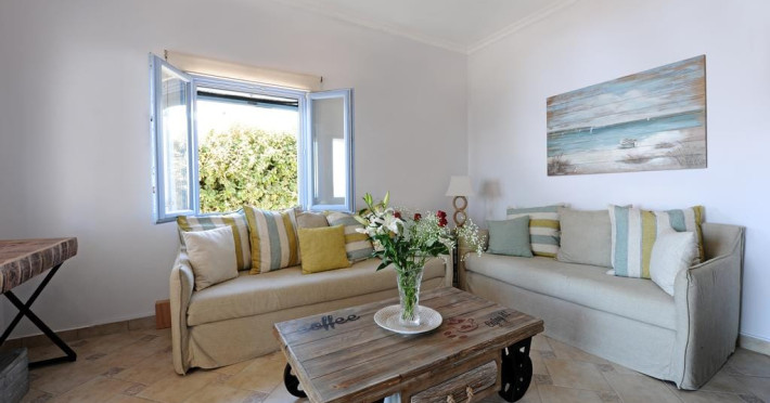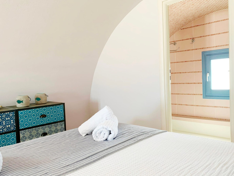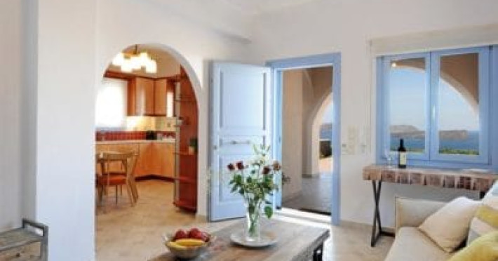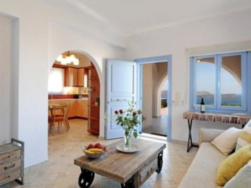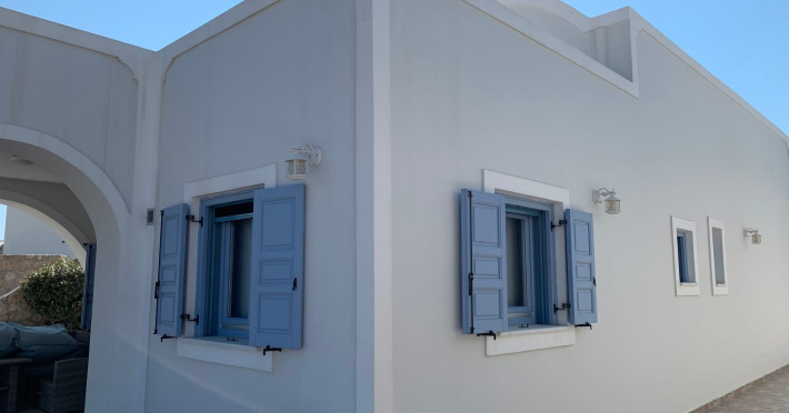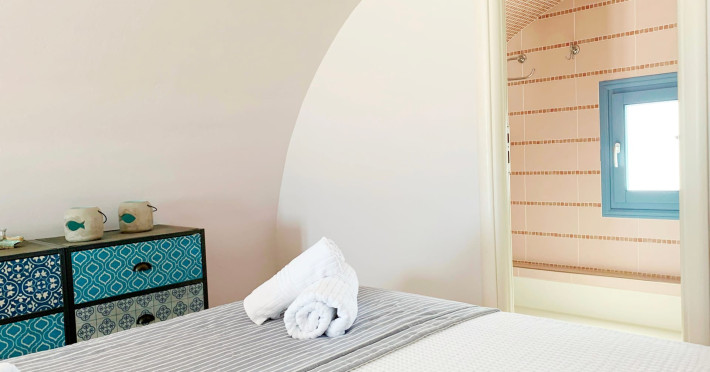 Accommodating up to six guests in its 110 square meters, each three-bedroom villa exudes the tranquility and allure of a Cycladic oasis that has it all: sweeping views over the volcano, comfortable living area with open-plan kitchen, spacious outdoor terrace with furniture and sunbeds. More specifically the villa offers an upper floor master bedroom, overlooking the volcano & caldera from the bed, with ensuite bathroom equipped with shower. This bedroom opens to a private terrace overlooking the caldera. Two ground floor bedrooms with king size beds sharing a bathroom with bathtub equipped with showerhead. A living area with flat-screen TV and open plan fully equipped kitchen and dining table which seats comfortably up to 6 persons.Accommodating up to six guests in its 110 square meters, each three-bedroom villa exudes the tranquility and allure of a Cycladic oasis that has it all: sweeping views over the volcano, comfortable living area with open-plan kitchen, spacious outdoor terrace with furniture and sunbeds. More specifically the villa offers an upper floor master bedroom, overlooking the volcano & caldera from the bed, with ensuite bathroom equipped with shower. This bedroom opens to a private terrace overlooking the caldera. Two ground floor bedrooms with king size beds sharing a bathroom with bathtub equipped with showerhead. A living area with flat-screen TV and open plan fully equipped kitchen and dining table which seats comfortably up to 6 persons.