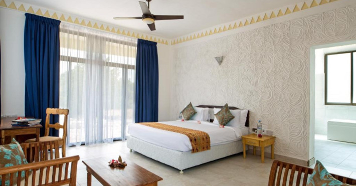 Cu un decor potrivit pentru Stone Town, aceste camere cu vedere la gradina au terase pe acoperis orientate spre est, cu parapeti sculptati aproape ca un minifort. Perfecte pentru o seara relaxanta, bucurandu-se de apusul soarelui, aceste acoperisuri au vedere la gradinile marginite de fructe si la rezervatia forestiera Kiwengwa. Interioarele sunt proiectate cu o simplitate incantatoare si eleganta, unele apartamente avand paturi cu baldachin. Peretii au tencuiala Vidaka, fiind o traditie care ajuta la pastrarea racoroasa a incaperilor. Toate camerele includ un dressing. Complexul are camere cu aer conditionat, birou, fierbator, frigider, minibar, seif, TV cu ecran plat, baie privata cu bideu, precum si un patio. Toate camerele de la Moja Tuu The Luxury villas & Nature Retreat au lenjerie de pat si prosoape.