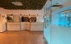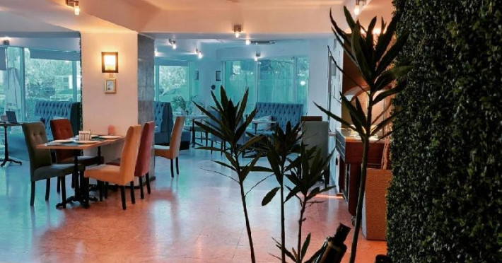 Sala situata la demisol are 100 de mp si se pot organiza evenimente cu pana la 60 de persoane.