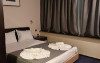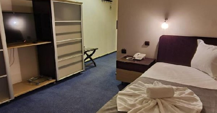 Camerele single, cu o suprafata de 13 mp, avand in dotare un pat matrimonial cu dimensiunea de 160 - 200 cm, sunt echipate cu TV, conexiune wireless gratuita la internet, control individual al temperaturii in camera, telefon si seif.