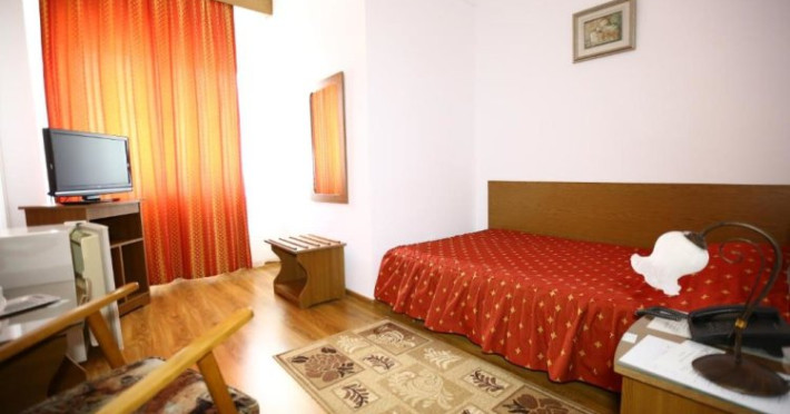 Spend an evening in a nice atmosphere of the bar. Its time to have a nice meal! Stop by the restaurant. Free Wi-Fi on the territory will help you to stay on-line. Specially for tourists who travel by car, theres a parking zone.Accessibility: there is an elevator/lift. Additional services that the hotel offers to its guests: a laundry, ironing and a safe-deposit box.Spend an evening in a nice atmosphere of the bar. Its time to have a nice meal! Stop by the restaurant. Free Wi-Fi on the territory will help you to stay on-line. Specially for tourists who travel by car, theres a parking zone.Accessibility: there is an elevator/lift. Additional services that the hotel offers to its guests: a laundry, ironing and a safe-deposit box.The room is warmly decorated and has everything you need to have a rest after a long eventful day. There is a shower and a TV. Please note that the listed services may not be available in all the rooms.The room is warmly decorated and has everything you need to have a rest after a long eventful day. There is a shower and a TV. Please note that the listed services may not be available in all the rooms.Datorita dinamicitatii domeniului disponibilitatea ofertelor se modifica de la un moment la altul. De aceea ofertele sunt valabile in limita locurilor disponibile. Agentia nu este responsabila pentru eventualele neconcordante care pot aparea intre informatiile privind tarifele si alte detalii din site si informatiile primite in agentie. In aceste cazuri vor avea prioritate, intotdeauna, informatiile primite in agentie.