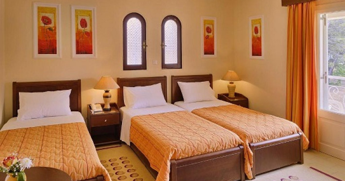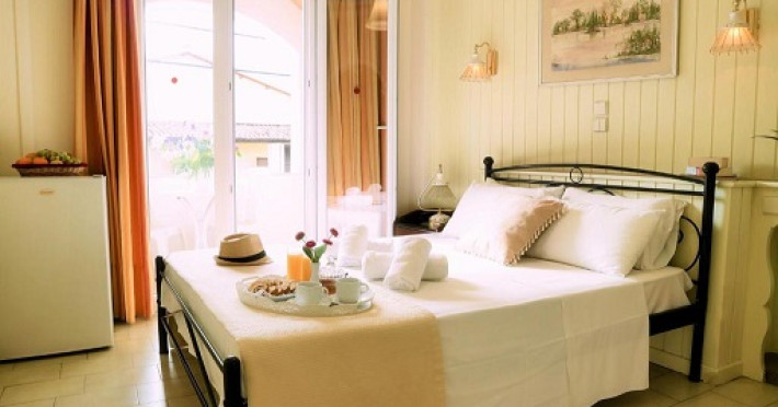 Hotelul dispune de 27 camere renovate, din care 19 au vederi laterale la mare, 3 camere au vedere la mare, alte 3 camere ofera vederi la sat si 1 apartament. Camerele sunt in mare parte twin, cateva cu pat dublu, dus privat si un balcon. Toate cele 27 de camere au aer conditionat, telefon, mini frigider si uscator de par.