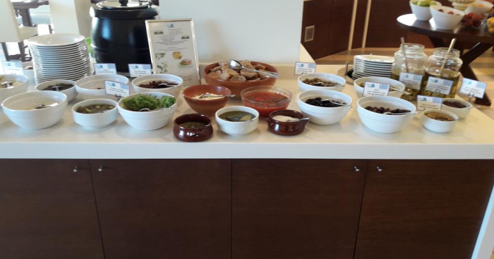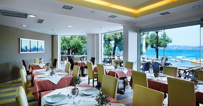 La Molos Bay oaspeții au la dispoziție un restaurant care servește mâncare à la carte. Bucătăria locală de la Molos Bay propune preparate delicioase care satisfac gusturi diverse. Masa poate fi servită atât în interior, cît si în aer liber, pe terasă, în funcție de vreme. Oaspeţii pot avea diverse băuturi răcoritoare sau alcoolice la bar.