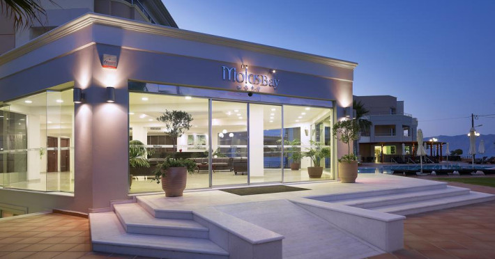 Molos Bay este o proprietate de 4 stele situată în Kissamos (Creta-Chania), care oferă piscină în aer liber, terasă cu șezlonguri și umbrele, precum și facilități spa. Facilitățile de la Molos Bay includ sală de fitness și business center. Proprietatea are, de asemenea, servicii de recepție cu program non - stop, concierge și închirieri auto. Se oferă acces gratuit la internet Wi-fi în spațiile publice. Parcarea este disponibilă la proprietate gratuit.