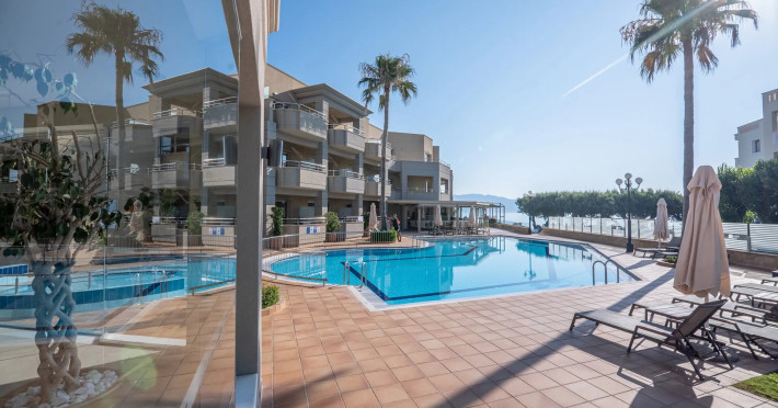 The hotel offers a unique mixture of comfortable and family-friendly accommodation options with a total number of 45 Suites and Junior Suites, as well as a complete holiday experience accomplished by its modern and luxurious services, free open-air pool, fully equipped fitness and wellness facilities, as well as a Cretan traditional breakfast at our all day beach bar– all accompanied by an astonishing view of the deep blue Cretan sea!