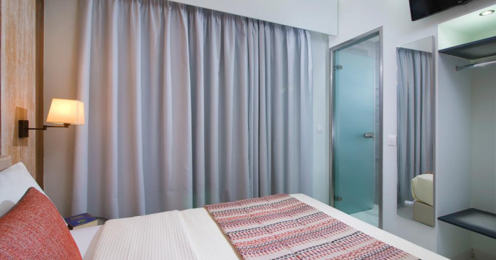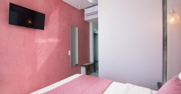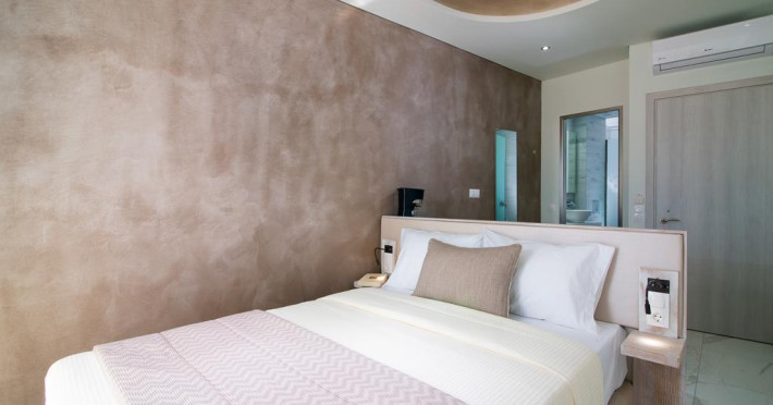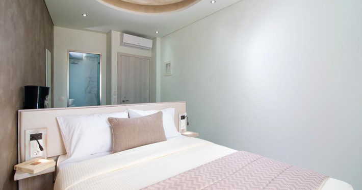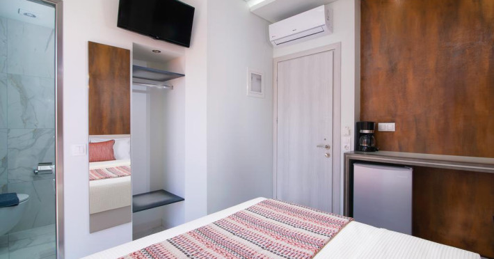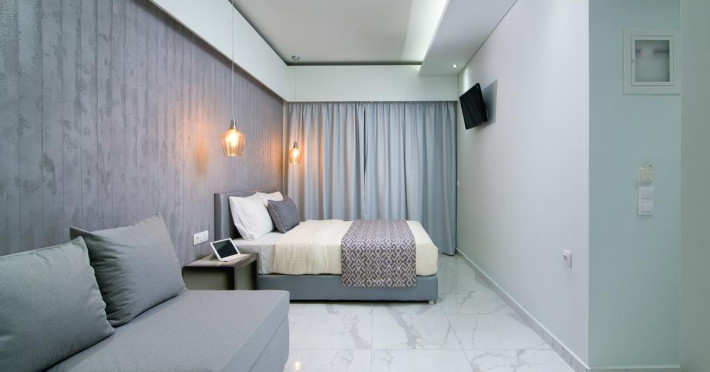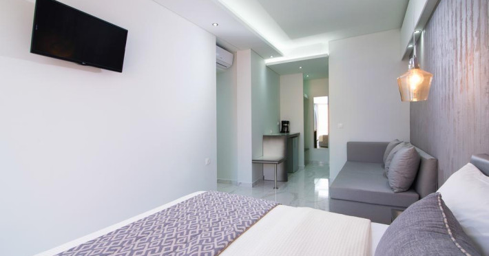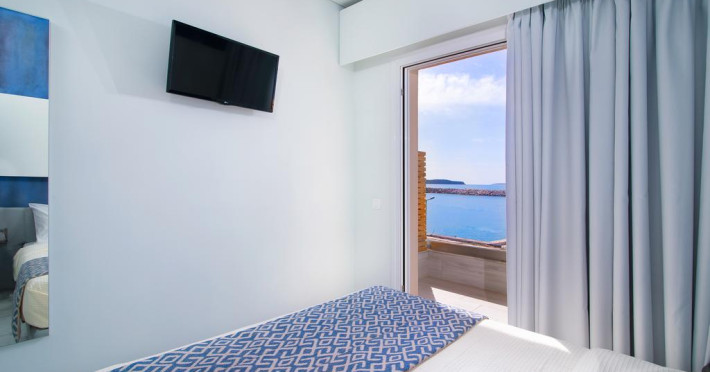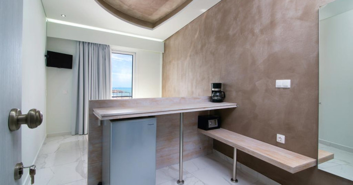 În camere există baie cu duș. Camerele luminoase de la Molos sunt dotate cu aer condiționat, Tv și seif. Curățenia in cameră se face zilnic. Proprietatea oferă camere pentru nefumători.