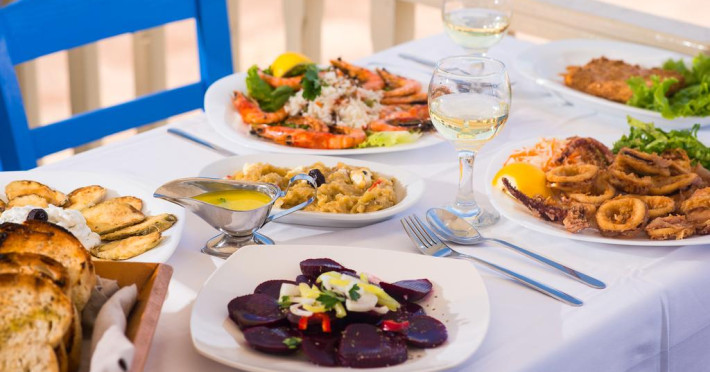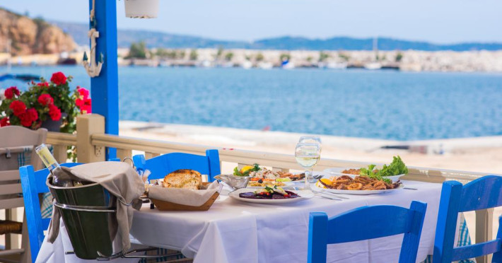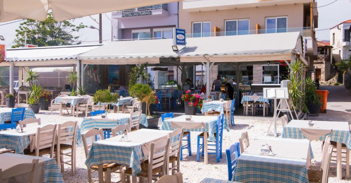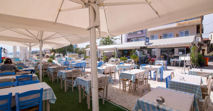 La Molos oaspeții au la dispoziție un restaurant care servește mâncare à la carte. Preparate din bucătăria grecească așteaptă să fie degustate în fiecare zi. Masa poate fi servită atât în interior, cît si în aer liber, pe terasă, în funcție de vreme. În cadrul proprietății există și o cafenea ideală pentru o gustare rapidă.