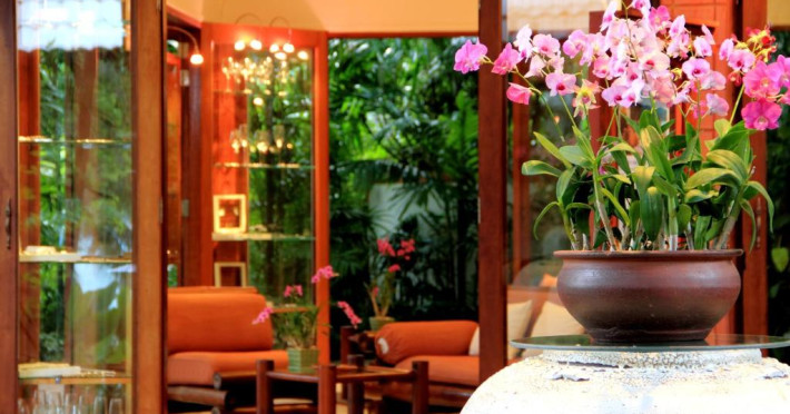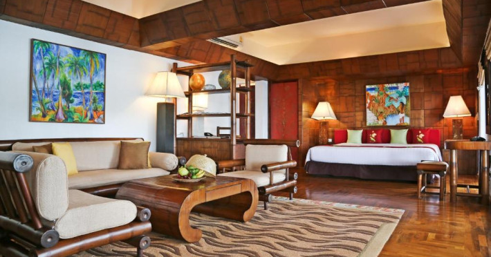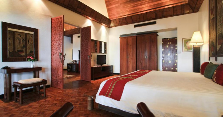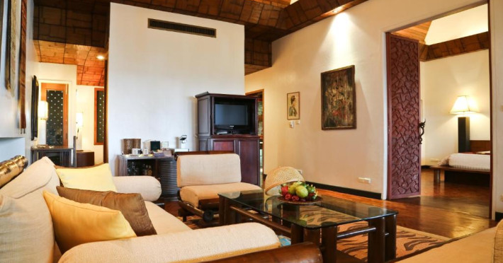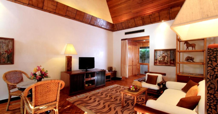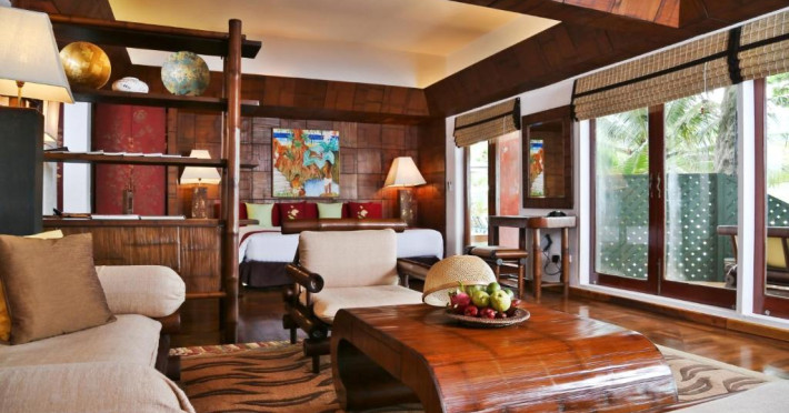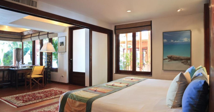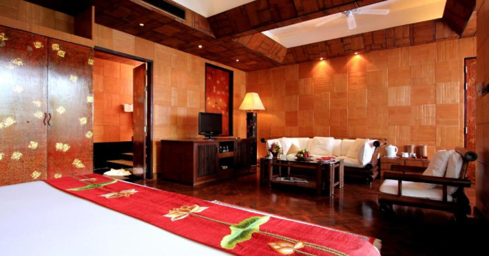 Suitele elegante de la Mom Tri’s Royale Villa au decor thailandez modern și podea din lemn. Fiecare vilă are balcon privat și zonă de relaxare cu TV cu ecran plat de 32 inch.