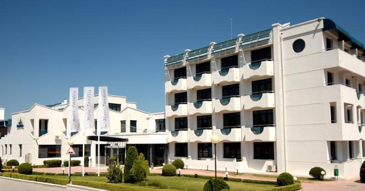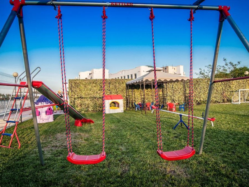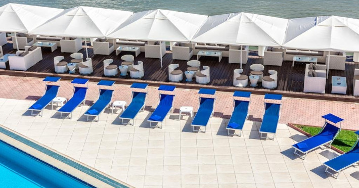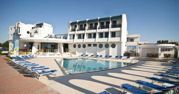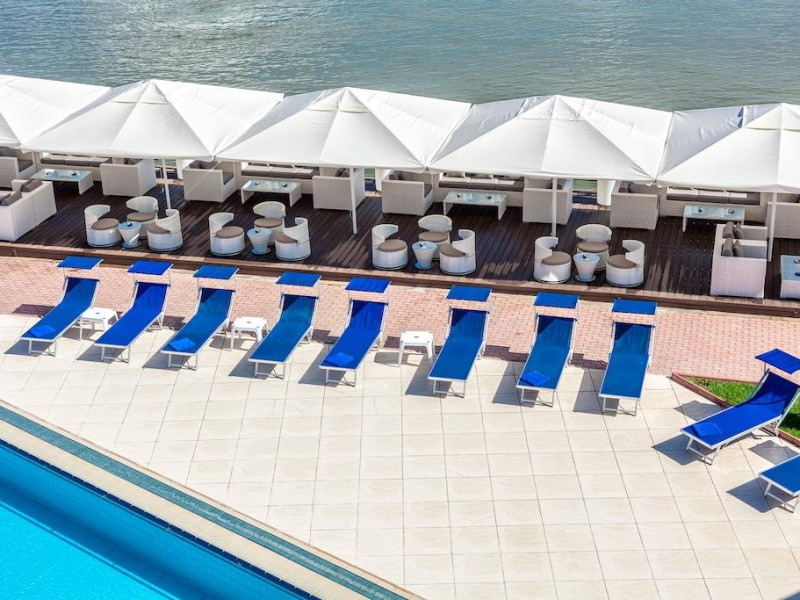 Hotelul este inconjurat de parcuri cu alei si bancute pentru relaxare, de piscine cu sezlong-uri si umbrele pentru plaja si de o terasa acoperita, dotata cu barbeque pentru petreceri in aer liber.