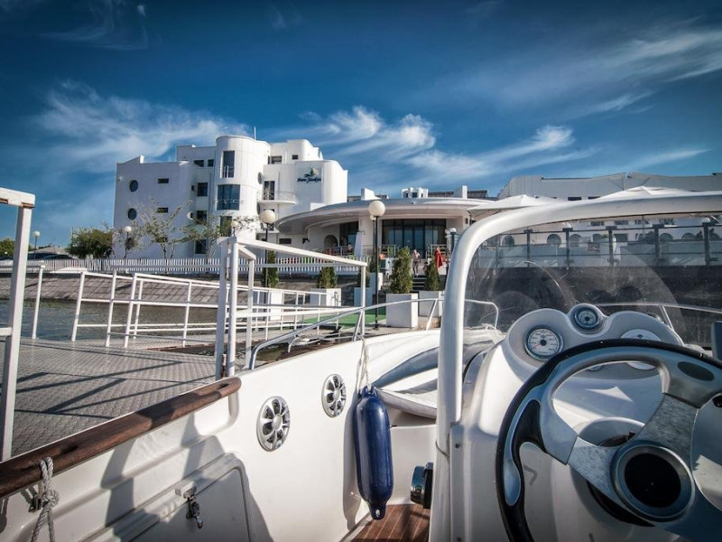 Cazarea in hotel va pune la dispozitie parcare pazita pentru oaspetii care sosesc cu masinile proprii si ponton de acostare pentru cei cu ambarcatiuni proprii.