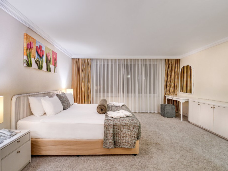 Descriere: Hotelul a fost deschis in anul 1987 iar ultima revovare a avut loc in anul 2019. Este contruit pe o suprafata de 100.000 mp si are in total 357 de camere.Localizare: Hotelul este situat pe plaja, la 6 km distanta fata de orasul Side si la 70 km fata de aeroportul din Antalya.