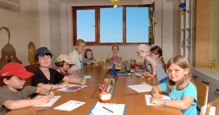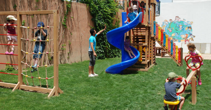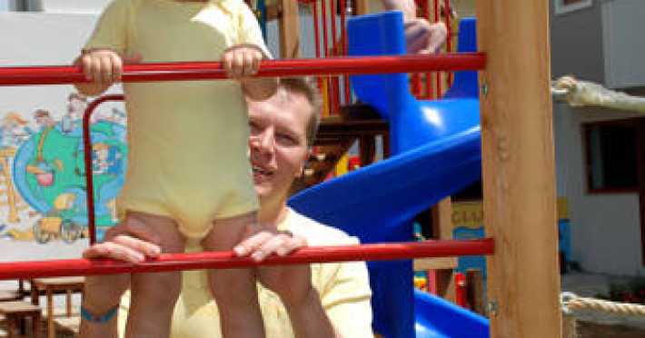 În grădina de la Monachus Hotel există un loc de joacă pentru copii special amenajat.