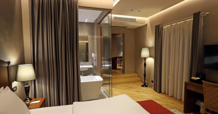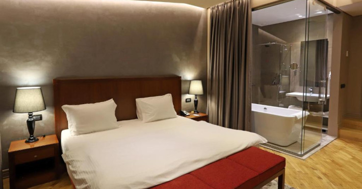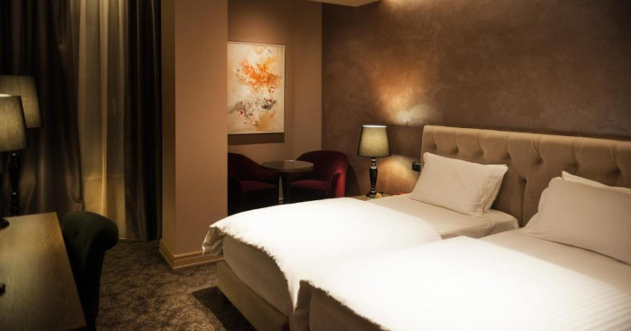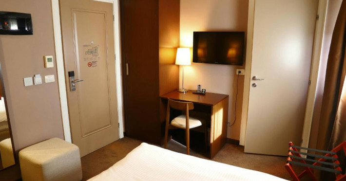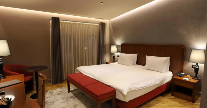 Cele mai multe dintre camere mari sunt decorate in rosu si includ TV prin satelit si minibar. De asemenea, acestea au baie privată cu uscător de păr si papuci.