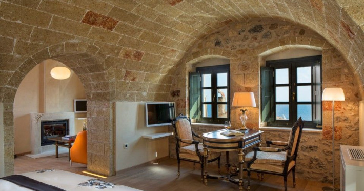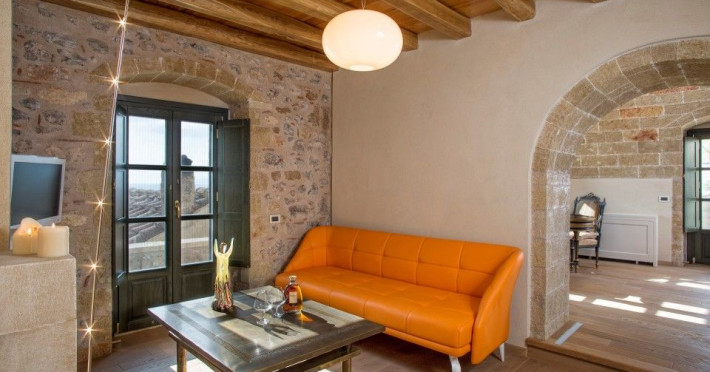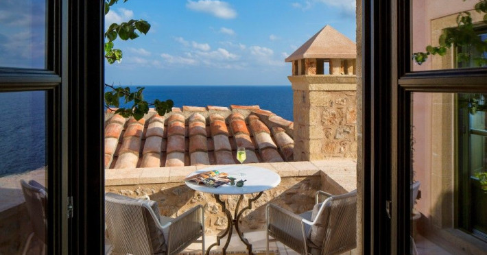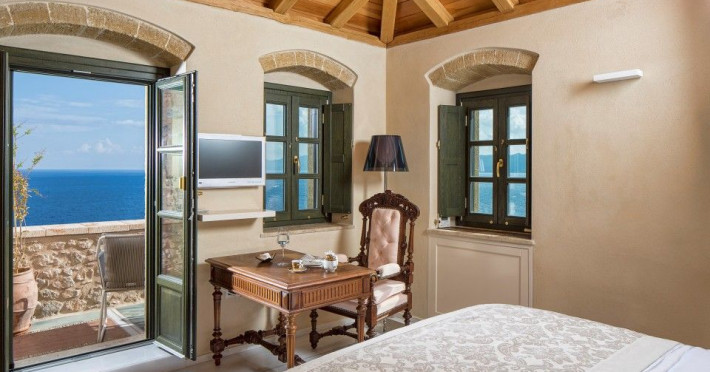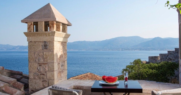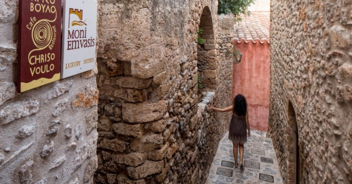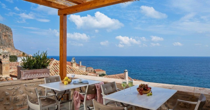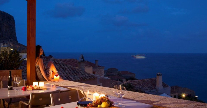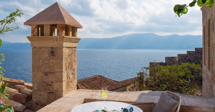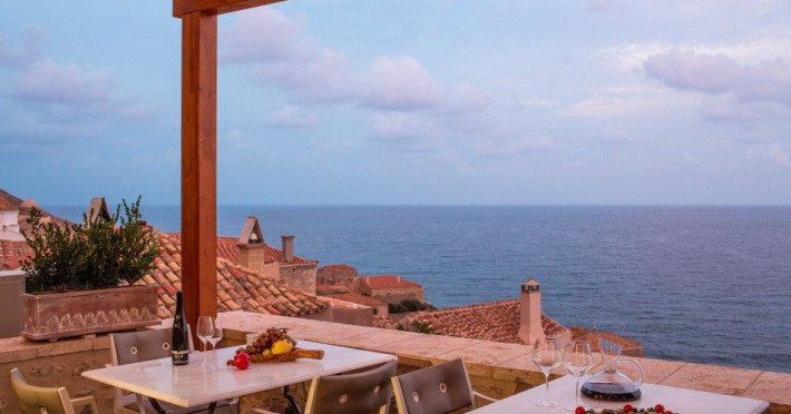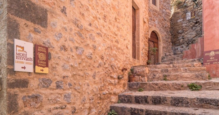 â€œMoni Emvasis Luxury Suites” welcomes you to Monemvasia, the favored castle town of Byzantine emperors. Escape from the anxieties of modern day life and surrender yourself to a unique time travel experience through the Byzantine era to today.  Walk along the cobbled stoned streets; discover merchant’s and seamen’s stately homes, ruins of Turkish baths, cisterns and Byzantine churches. Follow the towering bastion walls that reach the sea and enjoy moments of sheer relaxation with views across the azure crystal clear Myrtoo Sea. At a mere distance of fifty meters from the castle gate of Monemvasia, we created “Moni Emvasis Luxury Suites”. Three stately homes have been lovingly restored and transformed into a unique boutique hotel which personifies and embodies Monemvasian nobility, offering warm hospitality and excellent services to our discerning guests. Rooms are spacious with refined elegance, imposing décor and contemporary design that meets with tradition. The Chrisovoulo Restaurant & Bar invites you to enjoy your coffee, meal or drink in its atmospheric dining hall or on the outdoor balcony with its enchanting sea views. Traditional past meets the present with selective gourmet cuisine aimed to delight our guests with a unique gastronomic experience, guaranteed to impress whilst, served in a glamorous setting for a relaxed candlelit dinner. Please Note: Monemvasias Castropolitia is unfortunately not accessible to disabled people & wheelchair users.