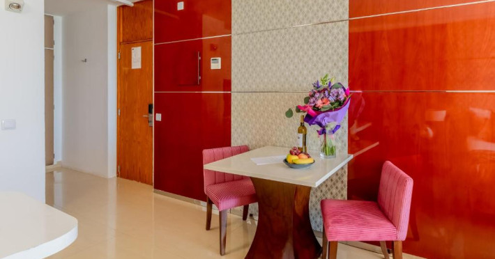 Hotelul de apartamente oferă oaspeților o terasă, vedere la mare, o zonă de relaxare, TV cu ecran plat cu canale prin satelit, o chicinetă complet utilată, cu cuptor și frigider, și o baie privată cu bideu și papuci. De asemenea, există minibar și aparat de cafea.
