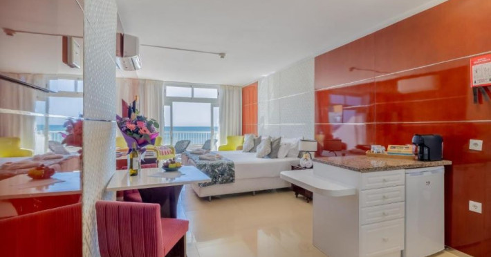 Toate camerele detin o terasă, vedere la mare, o zonă de relaxare, TV cu ecran plat cu canale prin satelit, o chicinetă complet utilată, cu un cuptor și frigider, și o baie privată cu bideu și papuci. De asemenea, există minibar și aparat de cafea.