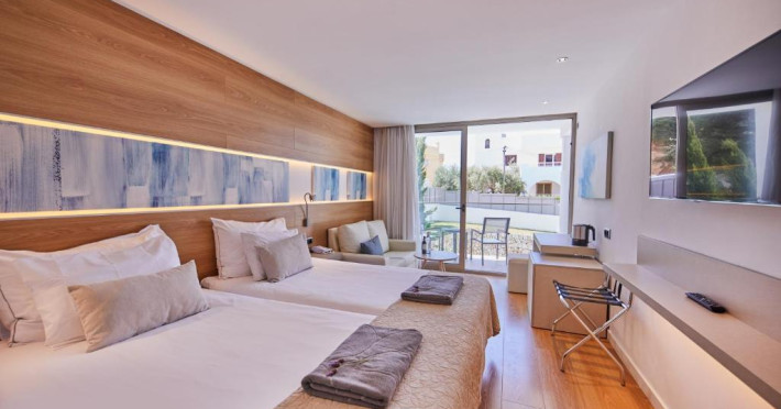 Sunprime Monsuau Hotel is located around 200 metres from the beach in Cala d’Or, on Mallorca’s south-eastern coast. The hotel has 2 swimming pools, a restaurant and sun terrace. There is a rooftop bar (open from June to September) and wellness center and spa.