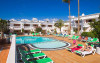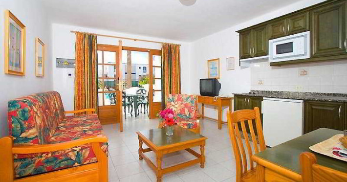 The complex is located in the centre of Puerto del Carmen, 500 m from the popular beach, in a peaceful setting. The complex features a restaurant-pool bar with satellite TV, some shops and a reception. In the 1-bedroom apartments with sofa bed can sleep up to 4 people and the 2-bedroom apartments can sleep up to 6 people. Both have a lounge/dining area, fridge, air conditioning and a terrace or balcony. Guests are offered a freshwater swimming pool and a saltwater pool as well as a snack bar. There is a childrens swimming area and spacious terraces for sunbathing and relaxing. Sports enthusiasts may play billiards or snooker. A seasonal entertainment programme for adults rounds off the offerings.The complex is located in the centre of Puerto del Carmen, 500 m from the popular beach, in a peaceful setting. The complex features a restaurant-pool bar with satellite TV, some shops and a reception. In the 1-bedroom apartments with sofa bed can sleep up to 4 people and the 2-bedroom apartments can sleep up to 6 people. Both have a lounge/dining area, fridge, air conditioning and a terrace or balcony. Guests are offered a freshwater swimming pool and a saltwater pool as well as a snack bar. There is a childrens swimming area and spacious terraces for sunbathing and relaxing. Sports enthusiasts may play billiards or snooker. A seasonal entertainment programme for adults rounds off the offerings.