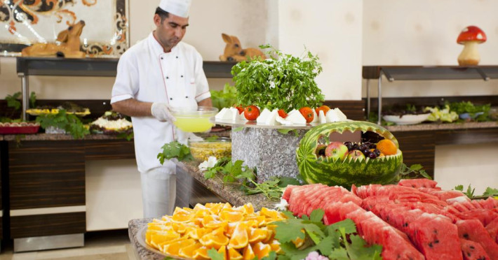 La Monte Carlo Hotel oaspeții au la dispoziție un restaurant care servește mâncare în stil bufet și à la carte. Masa poate fi servită atât în interior, cît si în aer liber, pe terasă, în funcție de vreme. Oaspeţii pot avea diverse băuturi răcoritoare sau alcoolice la bar. În cadrul proprietății există și un snack bar care servește băuturi și gustări. Pentru cei cu anumite nevoi de nutriție, Monte Carlo Hotel oferă meniuri pentru diete speciale.