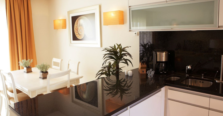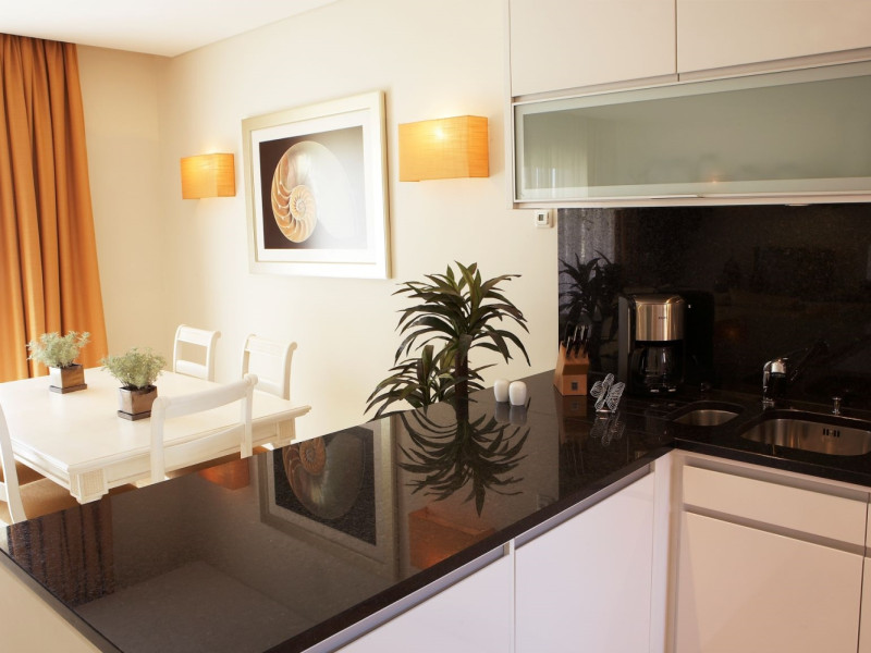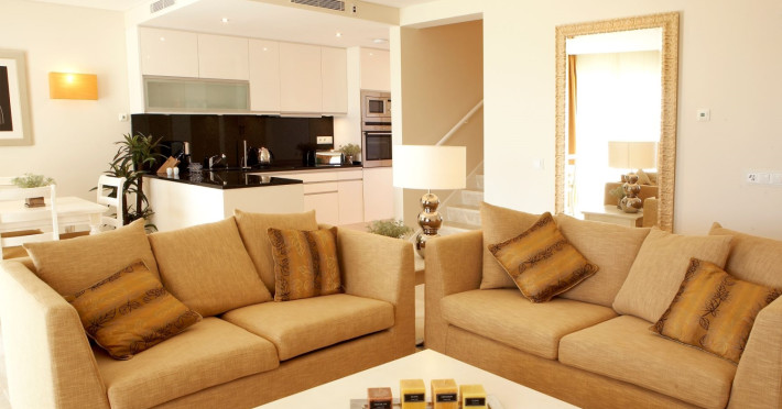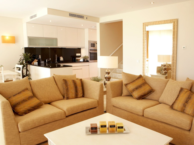 All units are characterized by large and comfortable spaces, decorated in beige tones and designed with a simple and elegant style. They contain a kitchen fully equipped, bathroom with shower and toiletries, air conditioning, Wi-Fi, LCD TV, telephone, safety deposit box, living room, dining room and a balcony or terrace. The 1-, 2- & 3- bedrooms suites are located in the middle of the resort gardens, and have bedrooms with double bed and private bathroom. 1-, 2- & 3- bedrooms luxury suites are also available, featuring a communicate living and dining room, private bathroom with spa bath and a selection of exclusive amenities. Finally, the 2- & 3- luxury townhouses are located in the most exclusive area of the hotel, enjoying a privileged view and a direct access to the pool, as well as providing a useful hydromassage bathtub.