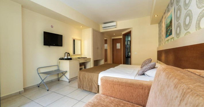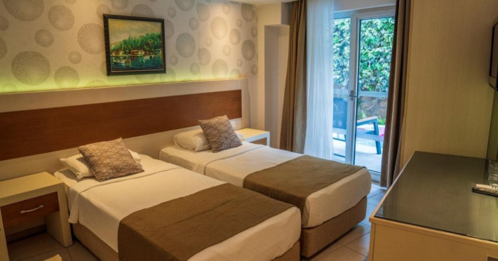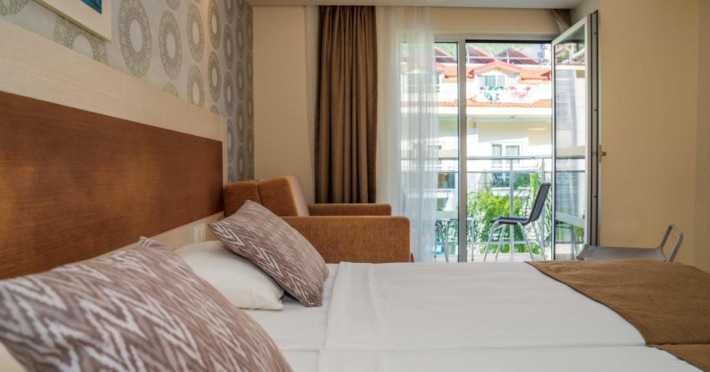 Localizare: Hotelul se află în apropiere de Oludeniz Nature Reserve and Beach și la 33 km de Aeroportul Dalaman. Facilități hotel: piscină exterioară, acces imediat la plajă, camere de familie, WiFi gratuit inclus, transfer de la și/sau la aeroport, spa și centru de wellness, parcare gratuită, sală de fitness, bar, zonă de plajă privată. Dotări camere: balcon, vedere la grădină, aer condiționat, baie privată, TV cu ecran plat, terasă, Minibar. Servicii contra cost: serviciu de transfer, serviciu de curățătorie și călcătorie, snorkelling, scufundări, facilități sporturi nautice, pescuit, echipament tenis, biliard, masaj, sală fitness, spa și centru wellness, saună, jacuzzi. IMPORTANT: Descrierea hotelului se bazează pe detaliile disponibile la momentul pregătirii tarifelor pentru sezonul turistic ce urmează a se desfășura și are caracter pur informativ. Hotelul poate aduce modificări de structură, denumiri camere, tip servicii incluse/neincluse și altele, fără a notifica în prealabil. Pentru informațiile oficiale vă rugăm să consultați website-ul hotelului.Datorita dinamicitatii domeniului disponibilitatea ofertelor se modifica de la un moment la altul. De aceea ofertele sunt valabile in limita locurilor disponibile. Agentia nu este responsabila pentru eventualele neconcordante care pot aparea intre informatiile privind tarifele si alte detalii din site si informatiile primite in agentie. In aceste cazuri vor avea prioritate, intotdeauna, informatiile primite in agentie.