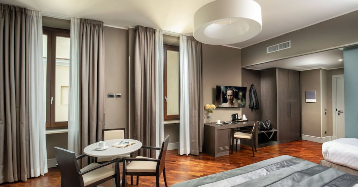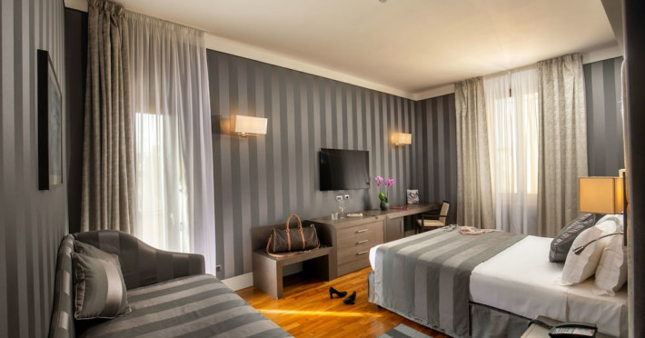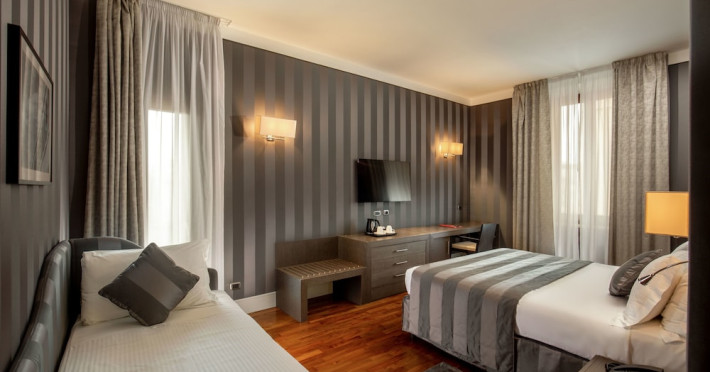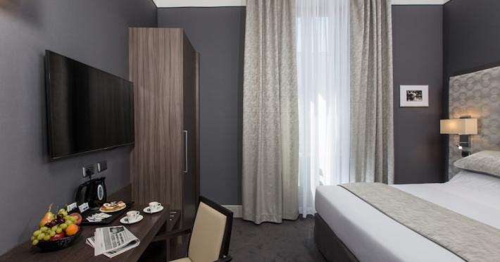 Enjoy recreation amenities such as a 24-hour fitness center or take in the view from a rooftop terrace. Additional features at this hotel include complimentary wireless internet access, concierge services, and a reception hall.lt;stronggt;Property Locationlt;/stronggt;lt;pgt;A stay at Monti Palace Hotel places you in the heart of Rome, within a 5-minute walk of Via del Boschetto and San Pietro in Vincoli. This upscale hotel is 0.3 mi (0.6 km) from Santa Prassede and 0.4 mi (0.6 km) from Imperial Fora.lt;brgt; Distances are displayed to the nearest 0.1 mile and kilometer. lt;br /gt; lt;pgt;Via del Boschetto - 0.3 km / 0.2 mi lt;br /gt; San Pietro in Vincoli - 0.3 km / 0.2 mi lt;br /gt; Torre dei Margani - 0.4 km / 0.2 mi lt;br /gt; Basilica di Santa Maria Maggiore - 0.5 km / 0.3 mi lt;br /gt; Santa Prassede - 0.6 km / 0.4 mi lt;br /gt; Piazza Santa Maria Maggiore - 0.6 km / 0.4 mi lt;br /gt; Roman Forum - 0.7 km / 0.4 mi lt;br /gt; Imperial Fora - 0.7 km / 0.4 mi lt;br /gt; Golden House of Nero - 0.7 km / 0.5 mi lt;br /gt; Teatro dellapos;Opera di Roma - 0.7 km / 0.5 mi lt;br /gt; Via Nazionale - 0.9 km / 0.5 mi lt;br /gt; Quirinale - 0.9 km / 0.5 mi lt;br /gt; Colosseum - 0.9 km / 0.6 mi lt;br /gt; Palatine Hill - 1 km / 0.6 mi lt;br /gt; Quirinale Palace - 1 km / 0.6 mi lt;br /gt; lt;/pgt;lt;pgt;The nearest airports are:lt;br /gt;Ciampino Airport (CIA) - 14.8 km / 9.2 milt;br /gt; Fiumicino - Leonardo da Vinci Intl. Airport (FCO) - 29.7 km / 18.4 milt;br /gt; lt;/pgt;lt;pgt;The preferred airport for Monti Palace Hotel is Fiumicino - Leonardo da Vinci Intl. Airport (FCO). lt;/pgt;lt;brgt; lt;stronggt;Roomslt;/stronggt;lt;pgt;Make yourself at home in one of the 55 guestrooms featuring minibars and LCD televisions. Complimentary wireless internet access keeps you connected, and digital programming is available for your entertainment. Private bathrooms with bathtubs or showers feature complimentary toiletries and hair dryers. Conveniences include phones, as well as laptop-compatible safes and desks.lt;pgt; lt;stronggt;Dininglt;/stronggt;lt;pgt;Grab a bite from the snack bar/deli, or stay in and take advantage of the hotelapos;s room service. Wrap up your day with a drink at the bar/lounge. A complimentary continental breakfast is served on weekdays from 7:00 AM to 9:00 AM and on weekends from 8:00 AM to 10:00 AM.lt;pgt; lt;stronggt;Business, Other Amenitieslt;/stronggt; lt;pgt;Featured amenities include complimentary wired internet access, dry cleaning/laundry services, and a 24-hour front desk. Limited parking is available onsite.lt;pgt;Datorita dinamicitatii domeniului disponibilitatea ofertelor se modifica de la un moment la altul. De aceea ofertele sunt valabile in limita locurilor disponibile. Agentia nu este responsabila pentru eventualele neconcordante care pot aparea intre informatiile privind tarifele si alte detalii din site si informatiile primite in agentie. In aceste cazuri vor avea prioritate, intotdeauna, informatiile primite in agentie.