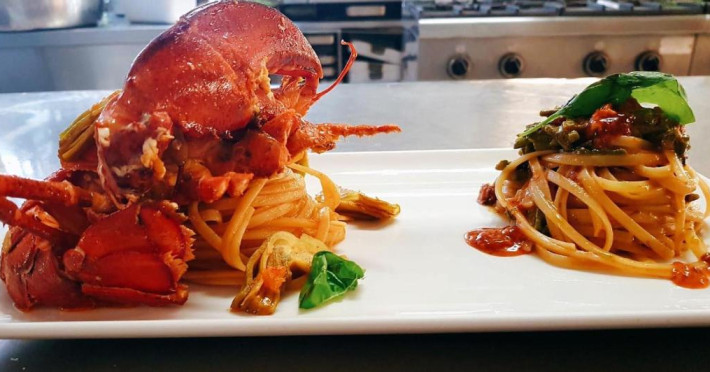 Micul dejun tip bufet și toate mesele oferite la restaurant sunt servite pe terasa cu vedere panoramică la nordul Insulei Sardinia.