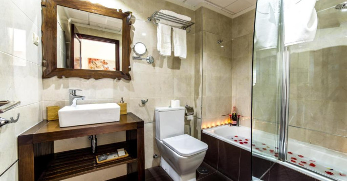 Fiecare cameră cu aer condiționat este dotată cu TV cu ecran plat cu canale prin satelit. Toate au baie privată cu duș sau cadă și uscător de păr. Sunt furnizate lenjerie de pat și prosoape.