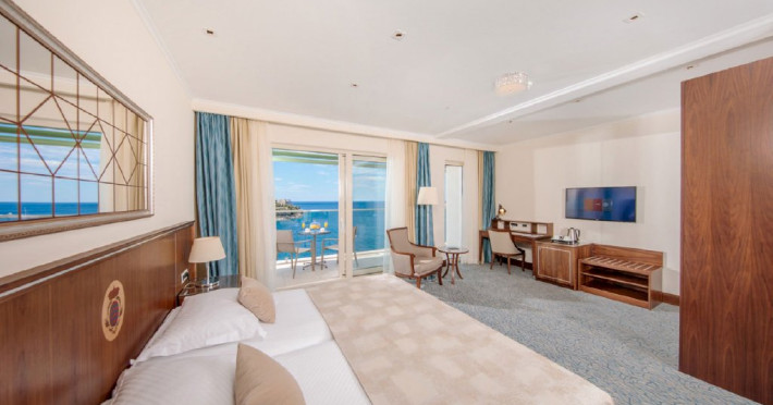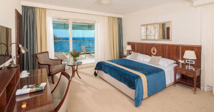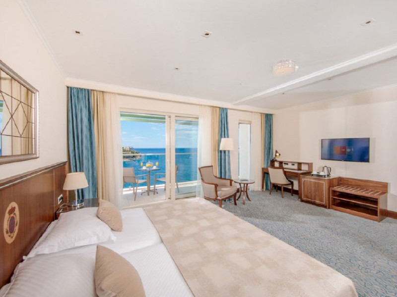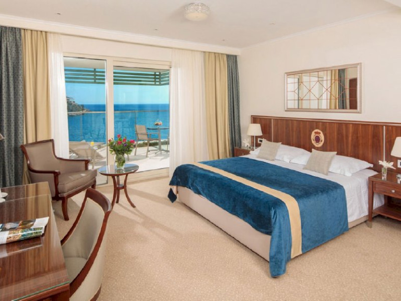 Descriere: Hotelul More din Dubrovnik este un hotel de lux de 5 stele, cu vedere la frumosul golf Lapad, unde puteti asculta murmurul marii, in timp ce privelistea spre orizontul albastru si stanci evoca liniste si pace. Apusurile sunt de neuitat. Cave Bar More, o extensie integrata in complexul More, este o pestera naturala aflata in proprietatea hotelului, care functioneaza ca bar. Camerele si suitele elegante, spatioase si luminoase, precum si privelistea uluitoare a Marii Adriatice si gradinile parfumate din jurul hotelului, ofera relaxarea atat de necesara.Localizare: Hotelul More este situat pe peninsula Lapad, la doar 3 km de centrul istoric al Orasului Dubrovnik si 23 km de aeroportul international. In imediata apropiere a hotelului exista o statie de autobuz care leaga peninsula de alte orase. Hotelul se afla in imediata vecinatate a marii si este inconjurat de vegetatie luxurianta mediteraneana care-i confera o atmosferta relaxanta. O pasarela care se intide de-a lungul intregii peninsule leaga hotelul de zona unde se poate face baie si este ideala pentru o plimbare in natura.