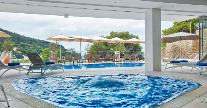 Facilitati hotel: Zona de plaja a Hotelului More este situata chiar sub hotel. Acesta este un loc ideal unde va puteti bucura de mare si soare, cu o priveliste frumoasa a pinilor si chiparosilor verzi, seculari, a marii limpezi de cristal, a stancilor marete numite Grebeni si a Insulelor Elaphite. Pe plaja si la piscina, oaspetii hotelului pot folosi gratuit sezlonguri, umbrele de soare si prosoape.