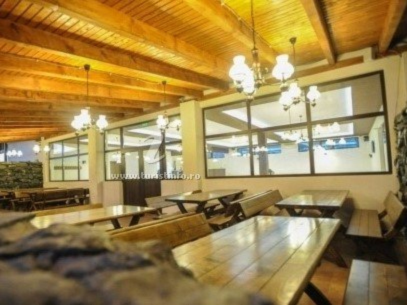Unitatea ofera o sala de mese cu o capacitate de 100 locuri si o bucatarie utilata.