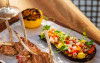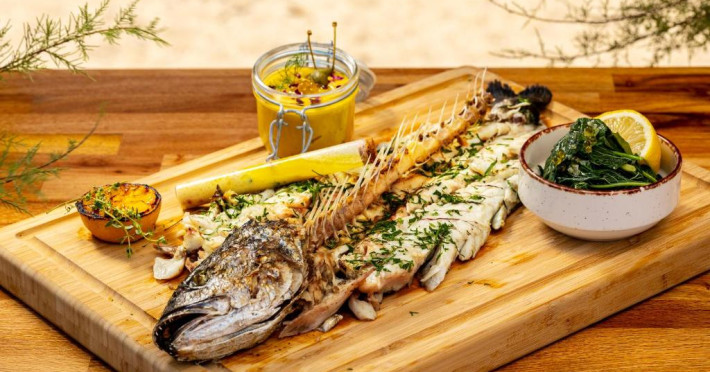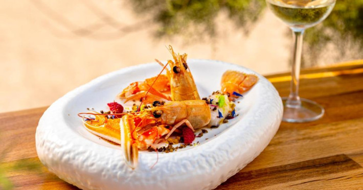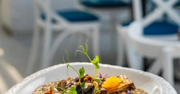 Mount Athos Resort servește un mic dejun continental cu produse proaspete sau un mic dejun grecesc à la carte. Restaurantele oferă preparate grecești moderne, mediteraneene și internaționale. In timpul verii, oaspeții au la dispoziție un bar pe plajă și un bar la piscină care servesc cocktailuri și preparate proaspete.
