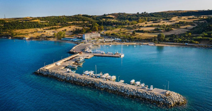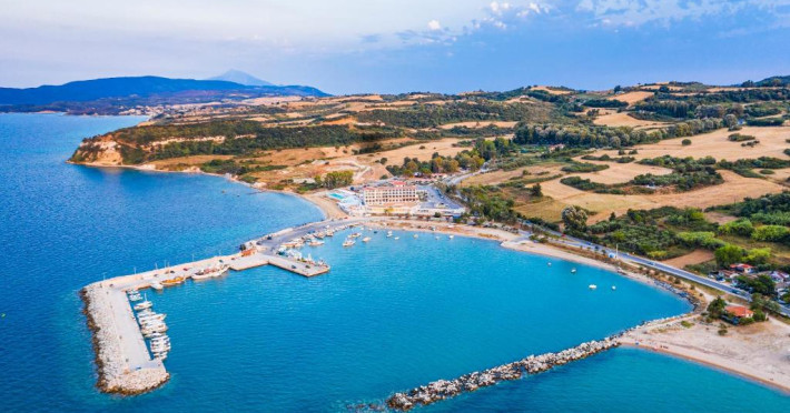 Proprietatea se află la 10 km de granită cu statul monahal Muntele Athos, iar localitatea Uranoupoli este situată la 15 km. Cel mai apropiat aeroport este Aeroportul Salonic, situat la 100 km de Mount Athos Resort.