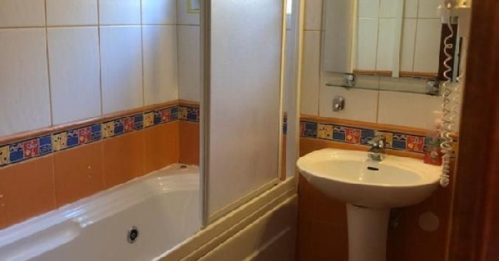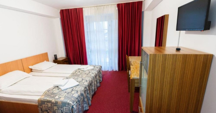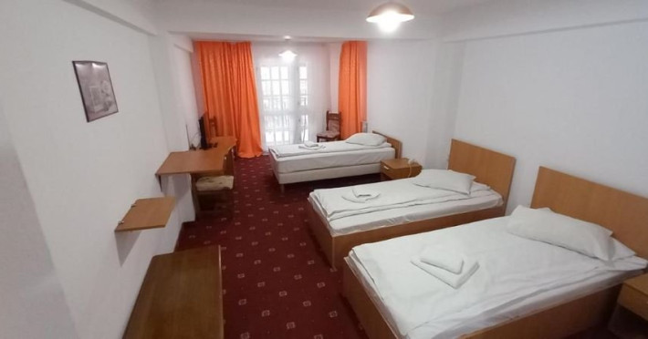 Camera cvadrupla: este spatioasa, are 4 paturi de o persoana, balcon, TV, minifrigider, wi-fi, fier de calcat, uscator de par, baie proprie cu cada