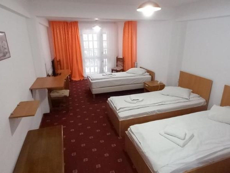 Camera tripla: 3 paturi de o persoana, tv, minifrigider, fier de calcat, uscator de par, baie proprie cu cada