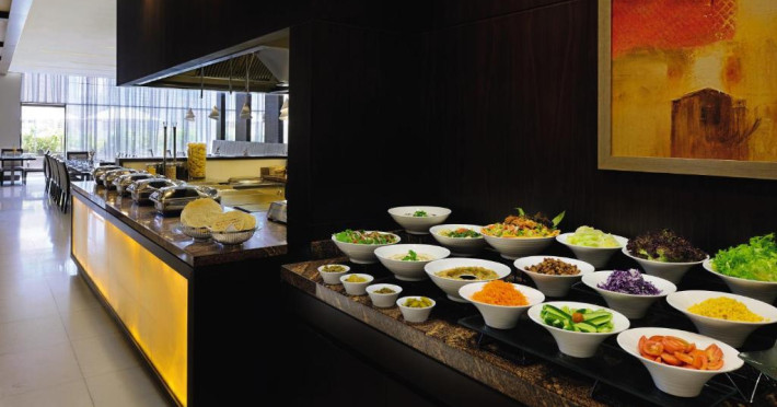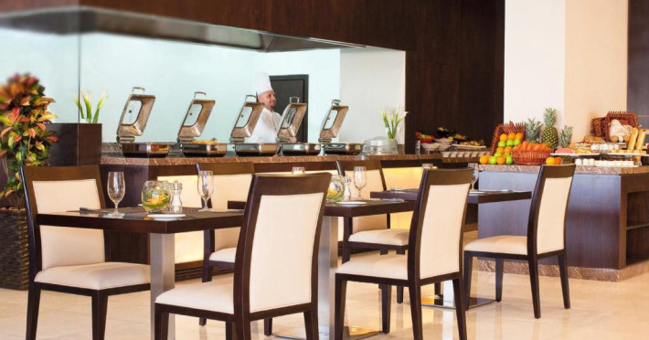 La Movenpick Hotel Apartments Al Mamzar Dubai oaspeții au la dispoziție un restaurant care servește mâncare în stil bufet și à la carte. Preparate din bucătăria internațională și orientală așteaptă să fie degustate în fiecare zi. Masa poate fi servită atât în interior, cît si în aer liber, pe terasă, în funcție de vreme. Oaspeţii pot avea diverse băuturi răcoritoare sau alcoolice la bar.