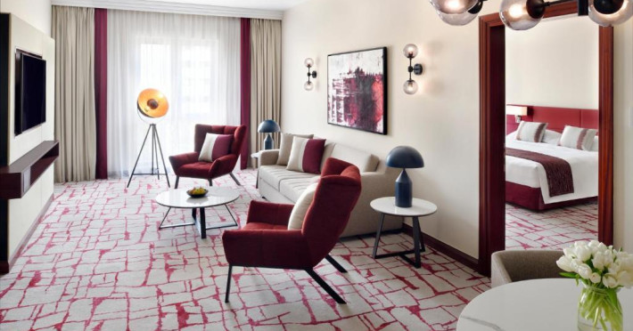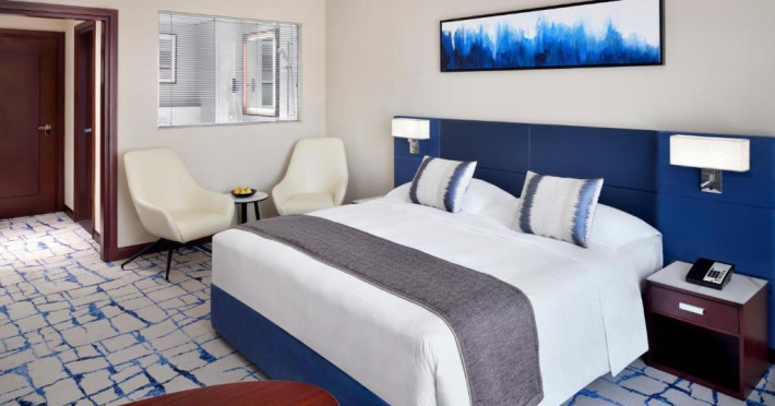 The five-star Mövenpick Hotel and Apartments Bur Dubai is 10 minutes from everywhere and perfectly positioned in a close proximity to Dubai International Airport and key locations. These include Dubai Healthcare City, Wafi Mall, World Trade Centre or Dubai International Conference Centre. Experience modern accommodations, exceptional dining and our newly renovated ballroom that can accommodate up to 350 guests. The hotel has completed a stylish refurbishment: 255 guestrooms, the expansive lobby, the Fountain restaurant and the Café lounge re-appear in a refreshingly contemporary image.The five-star Mövenpick Hotel and Apartments Bur Dubai is 10 minutes from everywhere and perfectly positioned in a close proximity to Dubai International Airport and key locations. These include Dubai Healthcare City, Wafi Mall, World Trade Centre or Dubai International Conference Centre. Experience modern accommodations, exceptional dining and our newly renovated ballroom that can accommodate up to 350 guests. The hotel has completed a stylish refurbishment: 255 guestrooms, the expansive lobby, the Fountain restaurant and the Café lounge re-appear in a refreshingly contemporary image.