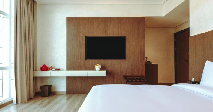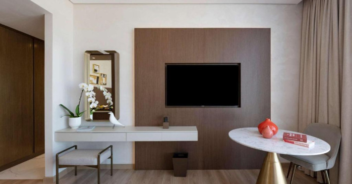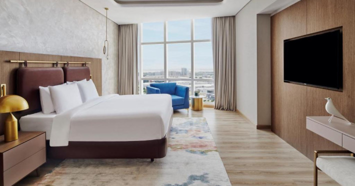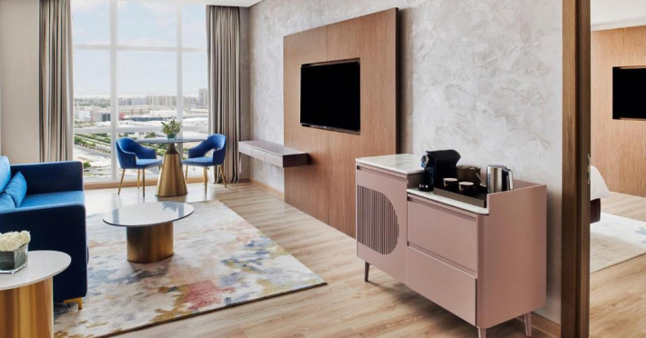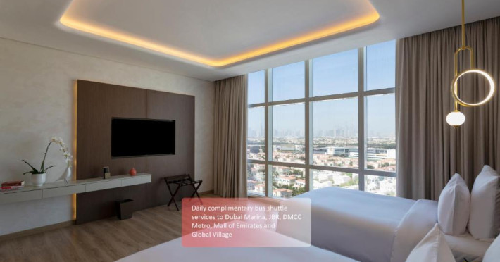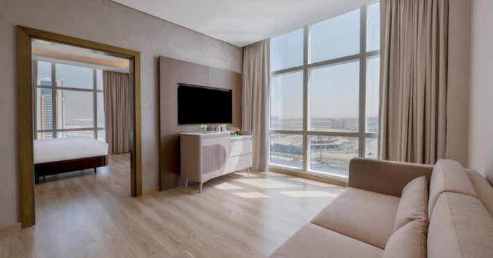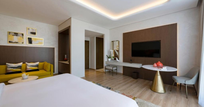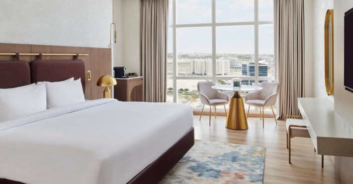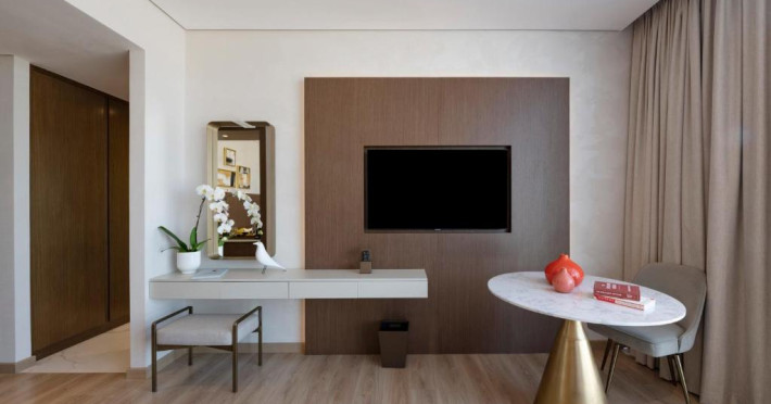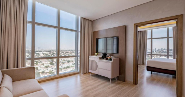 Unitățile acestui hotel includ climatizare, o zonă de relaxare, un televizor cu ecran plat cu canale prin satelit, o cutie de valori și o baie proprie cu bideu, articole de toaletă gratuite și un uscător de păr. Baia proprie oferă un duș, papuci de casă și halate de baie. La Movenpick Jumeirah Village Triangle, camerele sunt echipate cu lenjerie de pat și prosoape.