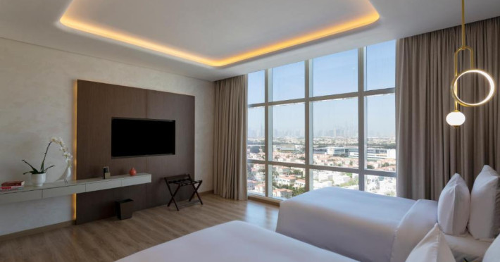 Movenpick Jumeirah Village Triangle se află la 9,4 km de The Walk at JBR și la 12 km de Dubai Autodrome. Aeroportul Internațional Al Maktoum se află la 21 km.