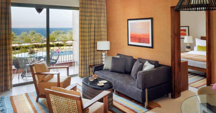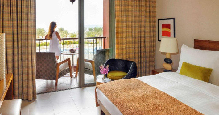 Camerele spatioase ale complexului Movenpick Tala Bay Aqaba sunt amenajate in culori luminoase si au ferestre din podea pană in tavan. Se oferă room service nonstop, iar unele camere au vedere la Marea Rosie.