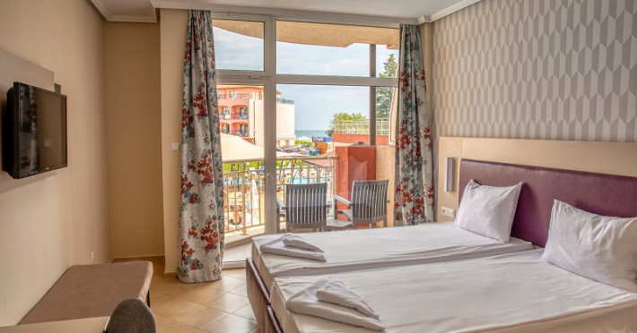 Hotelul este situat la doar 10 m de plaja si 200 m de centru statiunii Sunny Beach.